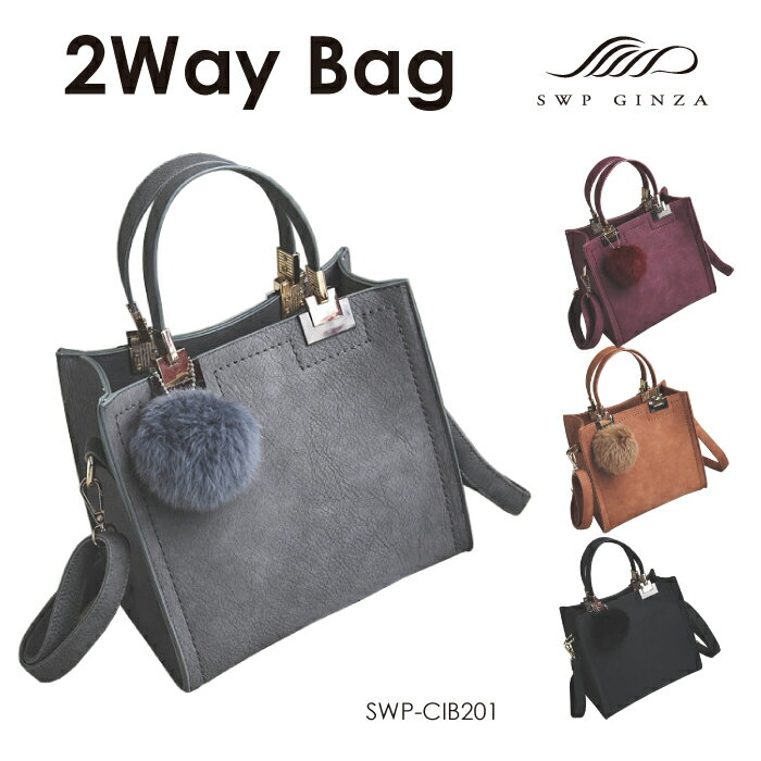 SWP ハンドバッグ ショルダーバッグ 2WAY 同色ポンポン 手提げバッグ CIB201